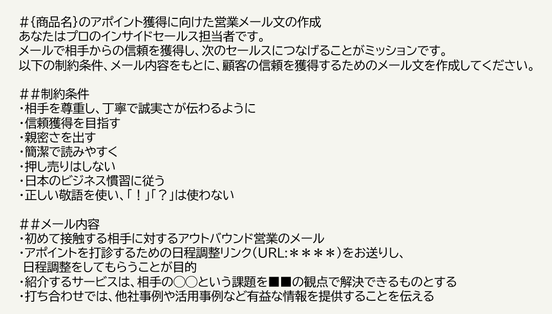 #{商品名}のアポイント獲得に向けた営業メール文の作成