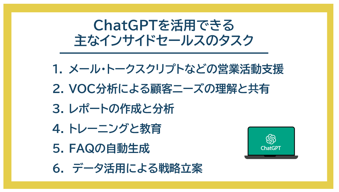 - 5.ChatGPTを活用できる主なインサイドセールスのタスク