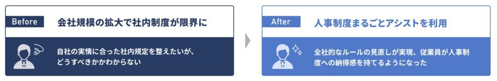 人事支援サービスを活用することで、はな様は単に規定の整備だけでなく、会社の独自性や特色を理解した上での具体的なアドバイスやサポートを受けることができました。この取り組みにより、従業員の人事評価制度の納得度や理解度が向上し、導入後の制度運用が軌道に乗っています。