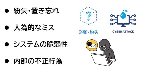 情報漏洩の原因は様々ですが、大きく4つの要因に分けられます。