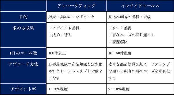 テレマーケティングとインサイドセールスは、どちらも内勤で営業活動を行うため混同されがちですが、性質は大きく異なります。