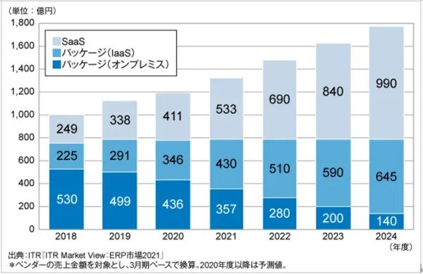 (出典:EnterpriseZineニュース「2020年度はコロナ禍の影響で鈍化か【ITR ERPの市場予測】」)