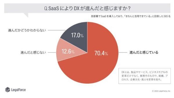 (出典:ZDNET Japan「SaaS活用者の約7割、「SaaSによりDXが進んだ」と回答--LegalForce調査」)