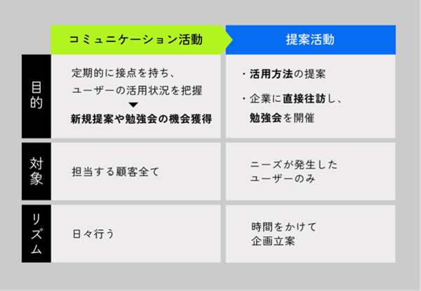 加えて、解約の申請期限を1ヶ月に短縮、かつ申請期限の1ヶ月前を迎えたユーザー企業全てに通知メールを送る、などの業務も従来は営業がおこなっていた業務をカスタマーサクセスの役務として実行するように変更しています。