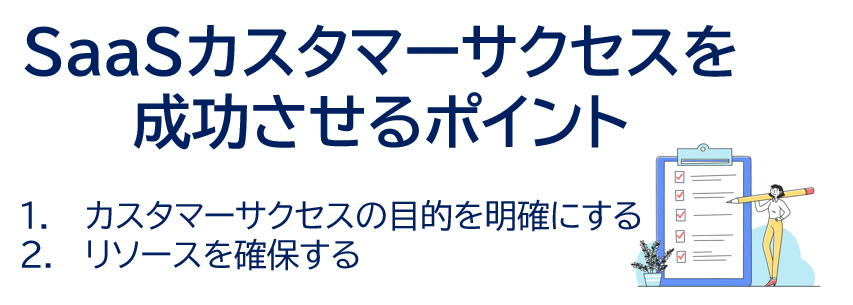 カスタマーサクセスを導入したは良いが、解約が多く収益の安定化に繋がらないというケースもあるかもしれません。売上に反映するカスタマーサクセス部隊を構築するためには、「カスタマーサクセスの目的を明確にする」「リソースを確保する」の2つのポイントを意識しましょう。それぞれのポイントについて解説します。