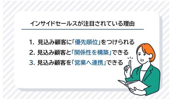 営業のデジタル化が進む中でインサイドセールスへの注目は増してきています。ここではインサイドセールスがなぜ注目されているかを解説します。