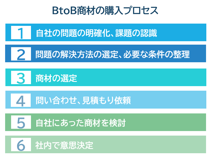 大まかに次のような流れでBtoB商材は購入に至ります。